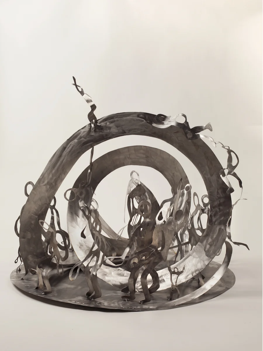 Migrants, 2016. Stainless steel, 67 x 79 x 79 cm. (2.2 x 2.6 x 2.6 ft.)